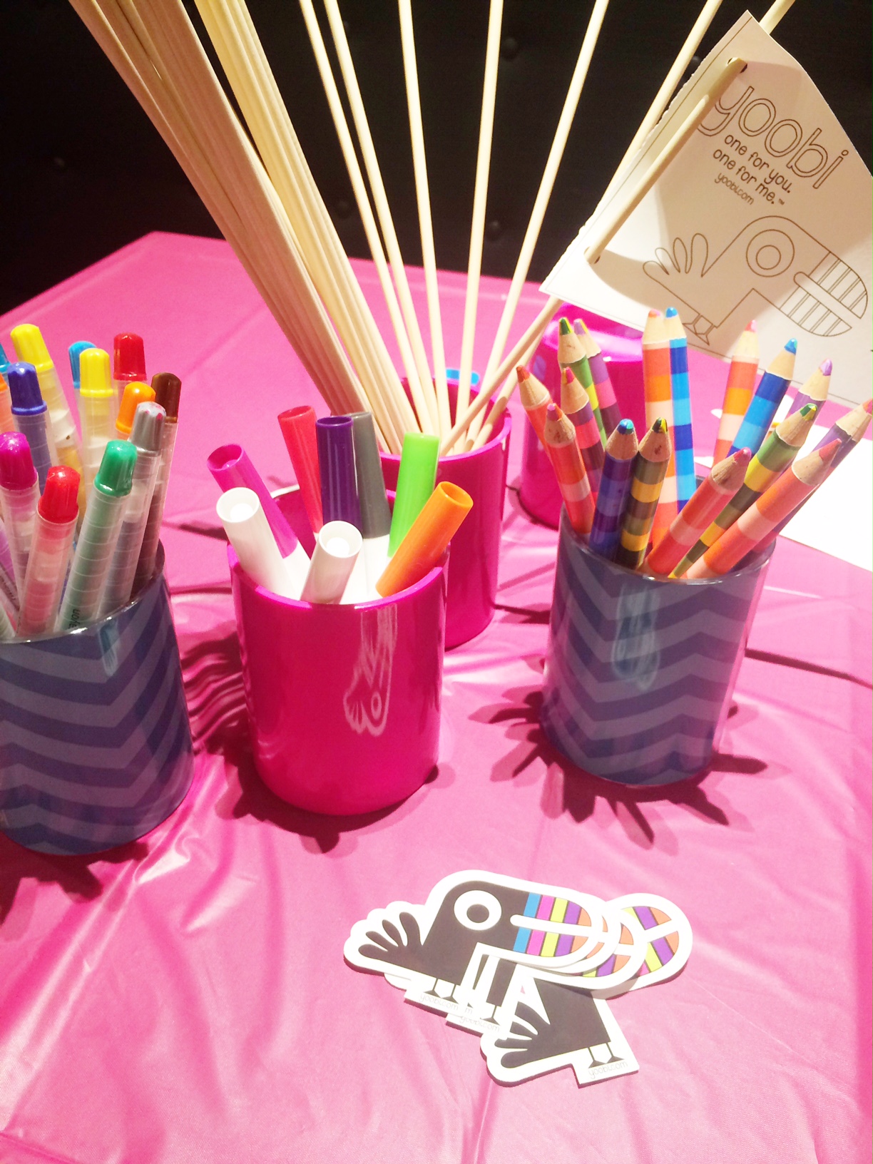 Yoobi is an awesome kids stationary and fun office supply company that we have been buying from for years at Target because their products last forever and work really well, even for rough and tumble little boys. Also their products are serious eye candy in the bright colors, not to mention their incredible cause. I never knew that Yoobi gives a “Yoobi Classroom Pack” to a classroom with the Kids in Need Foundation with every Yoobi item you purchase. AMAZING! I also learned that they came out with some super cool, well thought out backpacks and lunch bags that are in collaboration with Pharrel Williams (you know, the HAPPY song). One of the “I am OTHER” bag options is DIY so you can color with fabric markers to personalize your bag even further plus its a fun afternoon for wee ones. Everyone at Yoobi that we met today was bubbly, colorful and kind just the way we saw the brand. HUGE FANS!