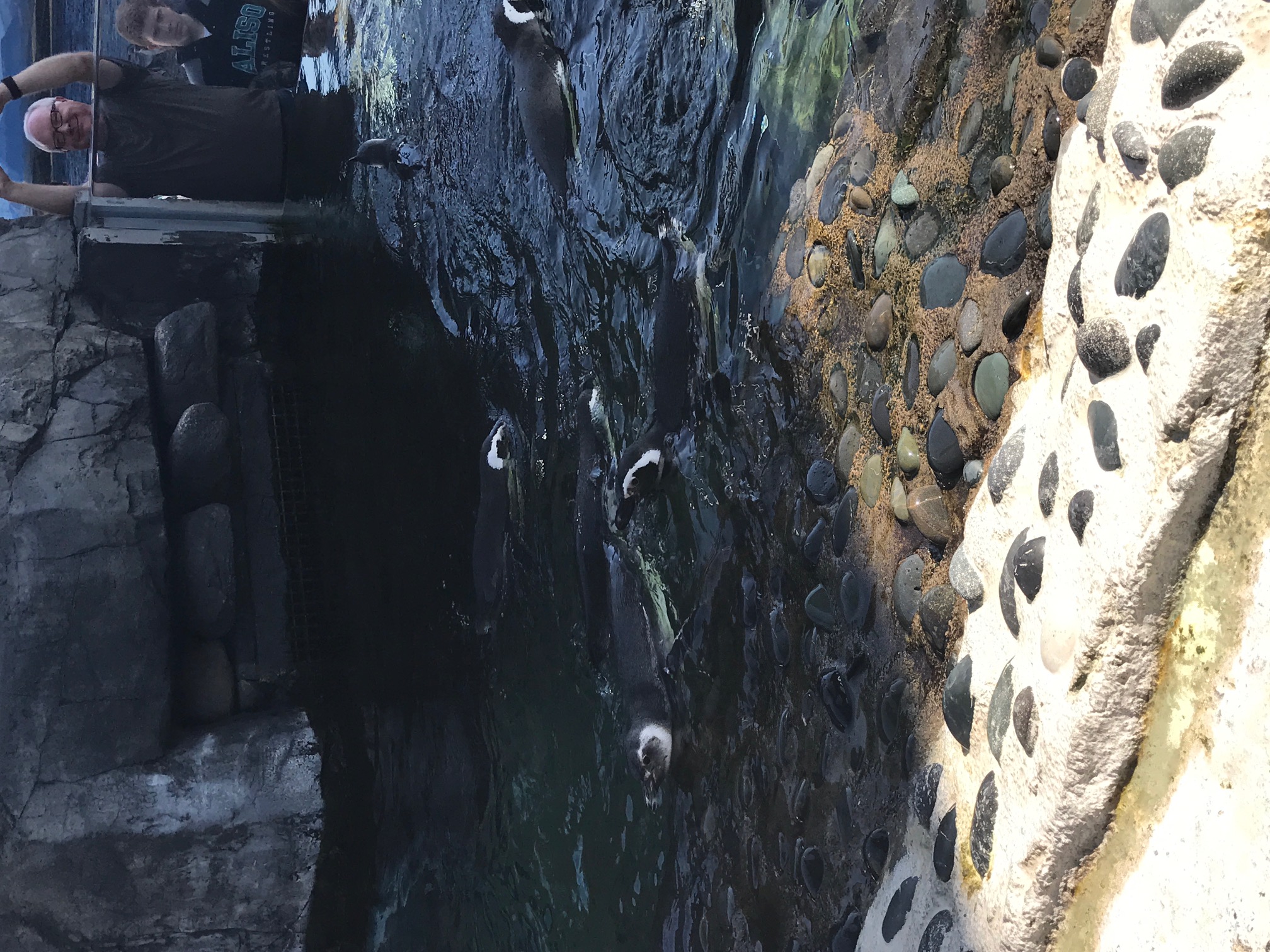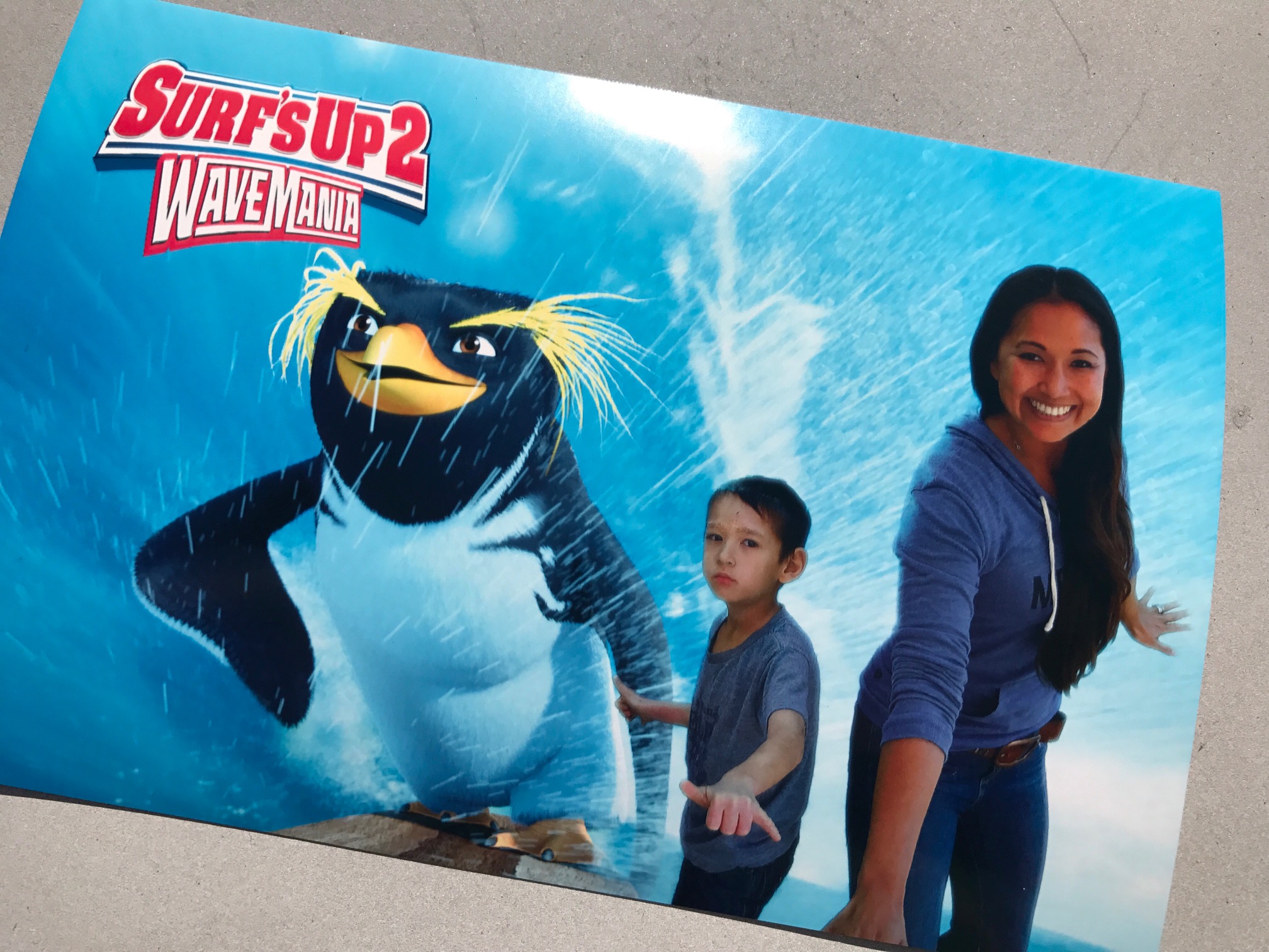 While getting a special experience of being inside the penguin enclosure, we learned a lot of new information about penguins. We learned that 75% of penguins are threatened or endangered. The educator at the aquarium shared that movies like Surfs Up 2 help bring education and awareness to these animals. The educator finds that with movies like Surfs Up 2 that people are more curious about what type of penguin each character is. This leads people to the aquarium and google to find out. When this happens, people stumble upon more information about these endangered species and want to do something that makes a difference. So while this may seem like a fun cartoon, it actually creates a very positive, educational campaign about penguins.