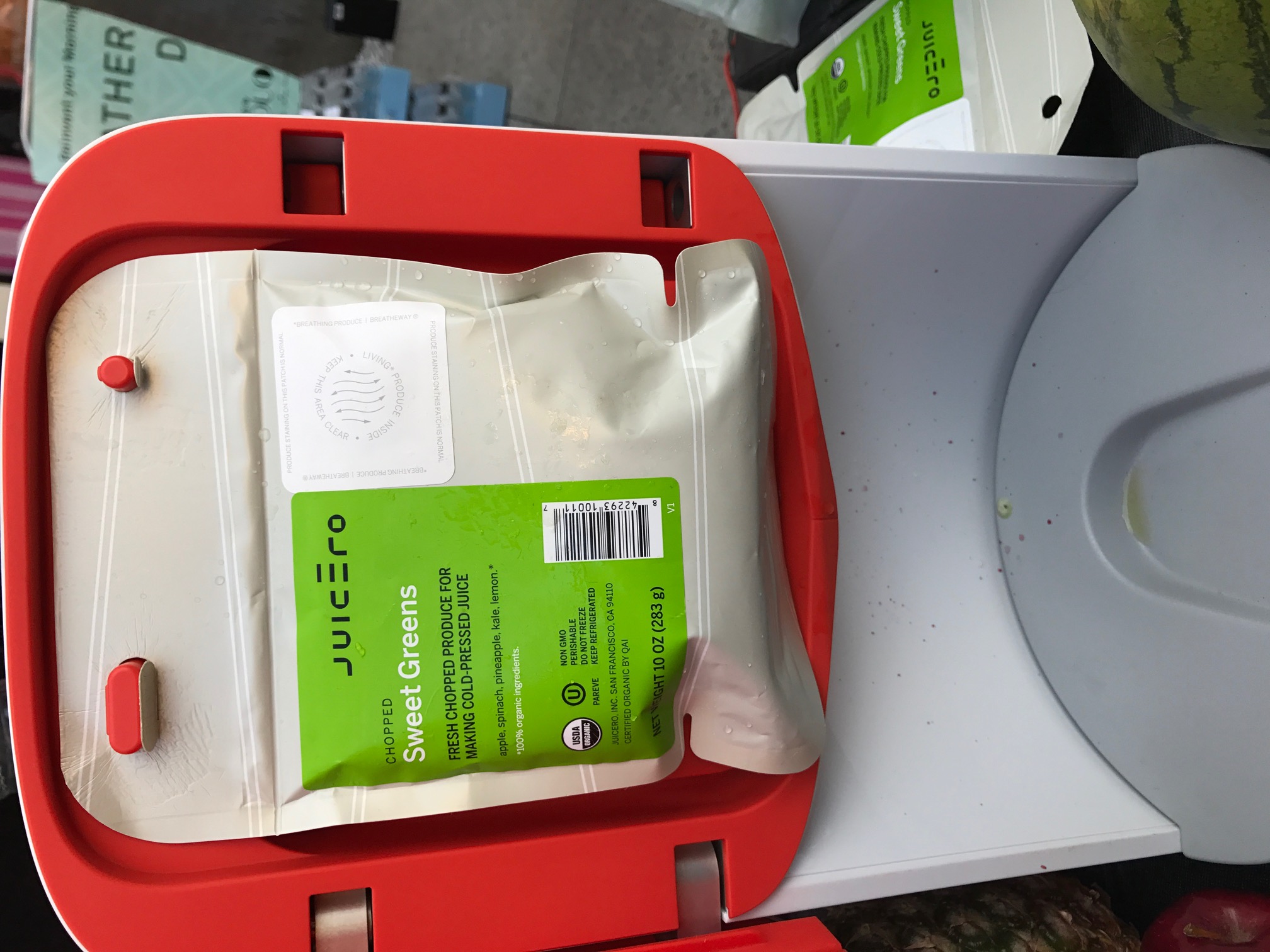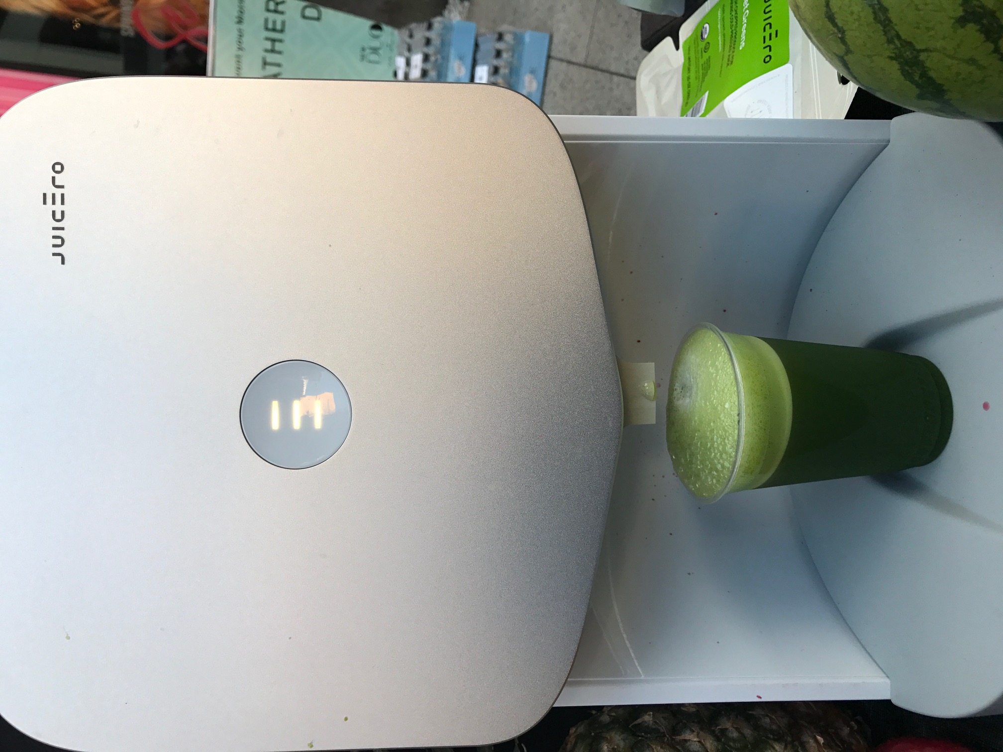 After my shot of caffeine, I went straight for the green juice. Juicero was there…I have been lusting after this machine for well..forever so it was cool to see it in action. You order your juice packets once a week, they deliver twice a week and the machine can read the packets QR code and wont press the juice if it is over the expiration date. No real mess. LOVE!