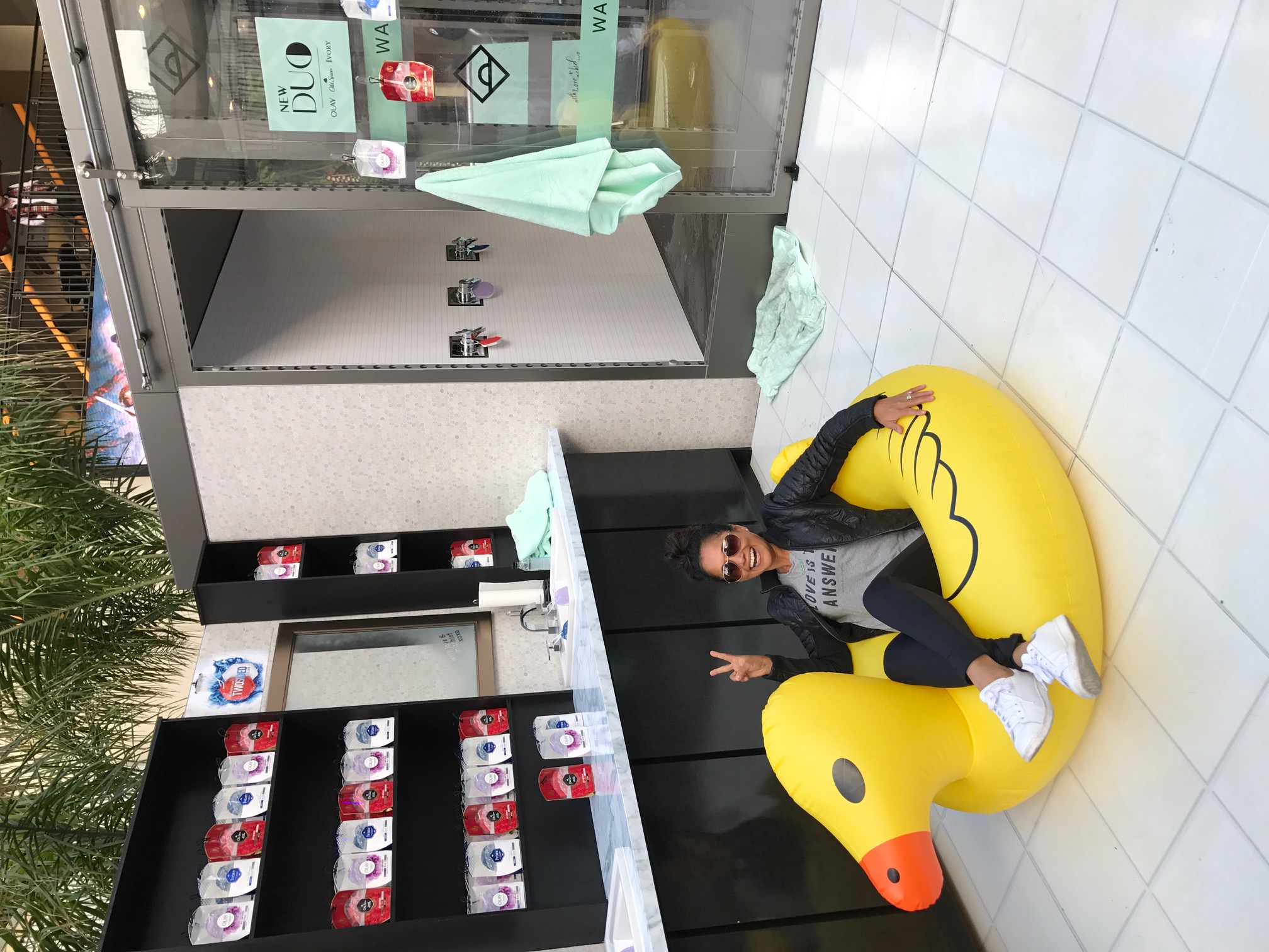 So the real reason I was at DayBreaker this am was to cover the launch of Olay and Old Spice’s newest product DUO being launched with Ashley Tisdale, who I absolutely adored in High School Musical. She was sent the DUO and fell in love with it. She loves the smell and it revolutionized her morning. Easier and cleaner than a loofah and lasts about 30 showers before you have to get another one.