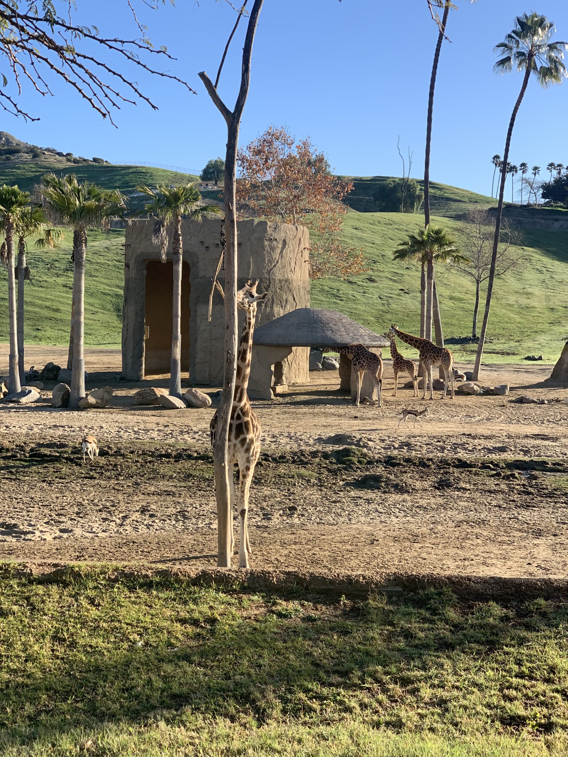 As soon as we checked in, we were taking We most definitely stayed up way past our bedtime on a night vision google tour, walking BTS to see the tigers, make s’mores around a campfire with friends. We woke up to a stunning view (SD Safari Park is 1800 acres) where we saw giraffes and elephants eating their breakfast and roaming their grounds peacefully. We did a tram tour and then meet a laughing kookaburra (the cutest bird ever!) and a blue throated macaw, one of only 250 left in the world.