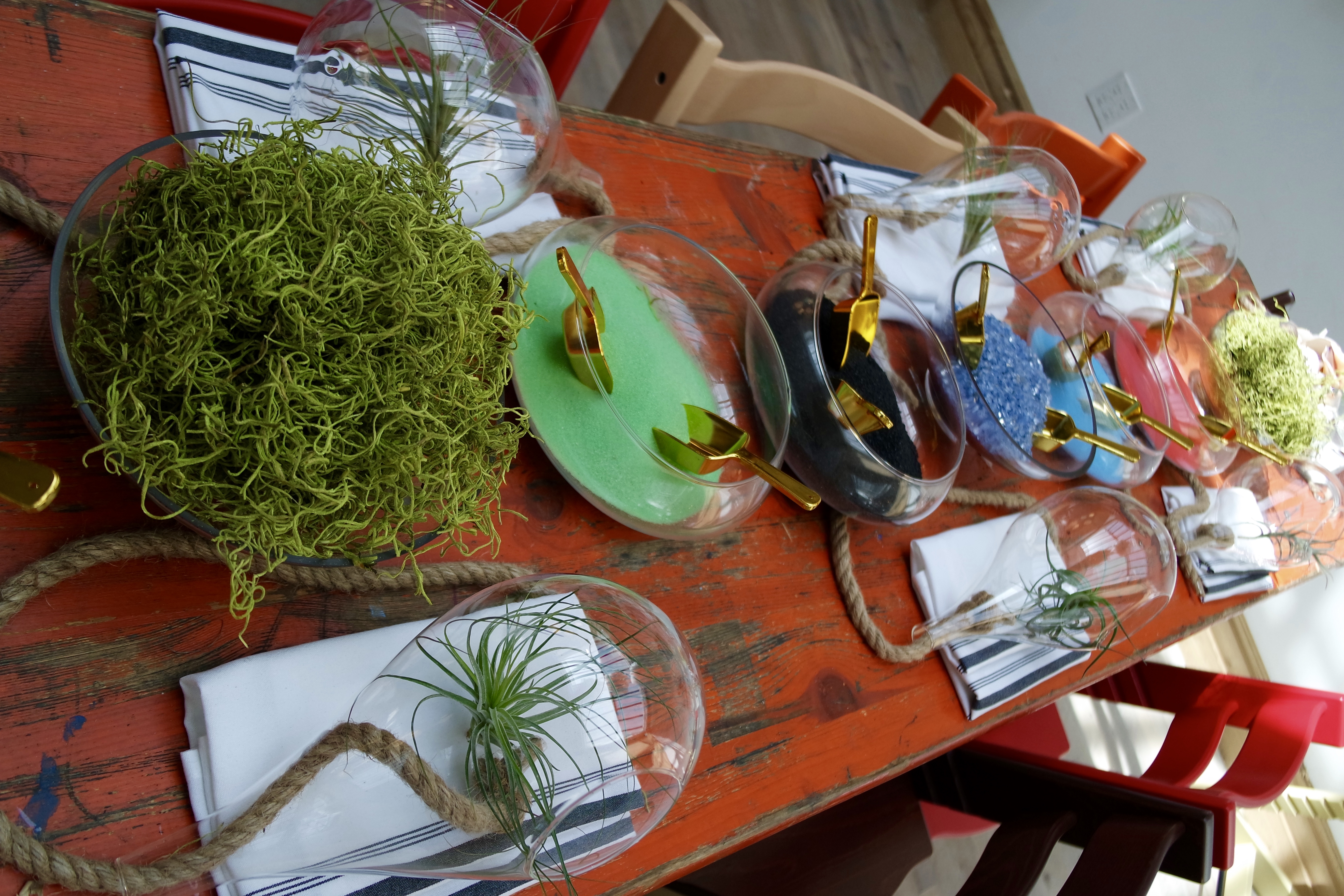While we sipped Rose and mocktails, nibbled on yummy food and looked at fabulous product, we also got to make terrariums. Since my little guy was at school, I got to craft by myself. Yes!