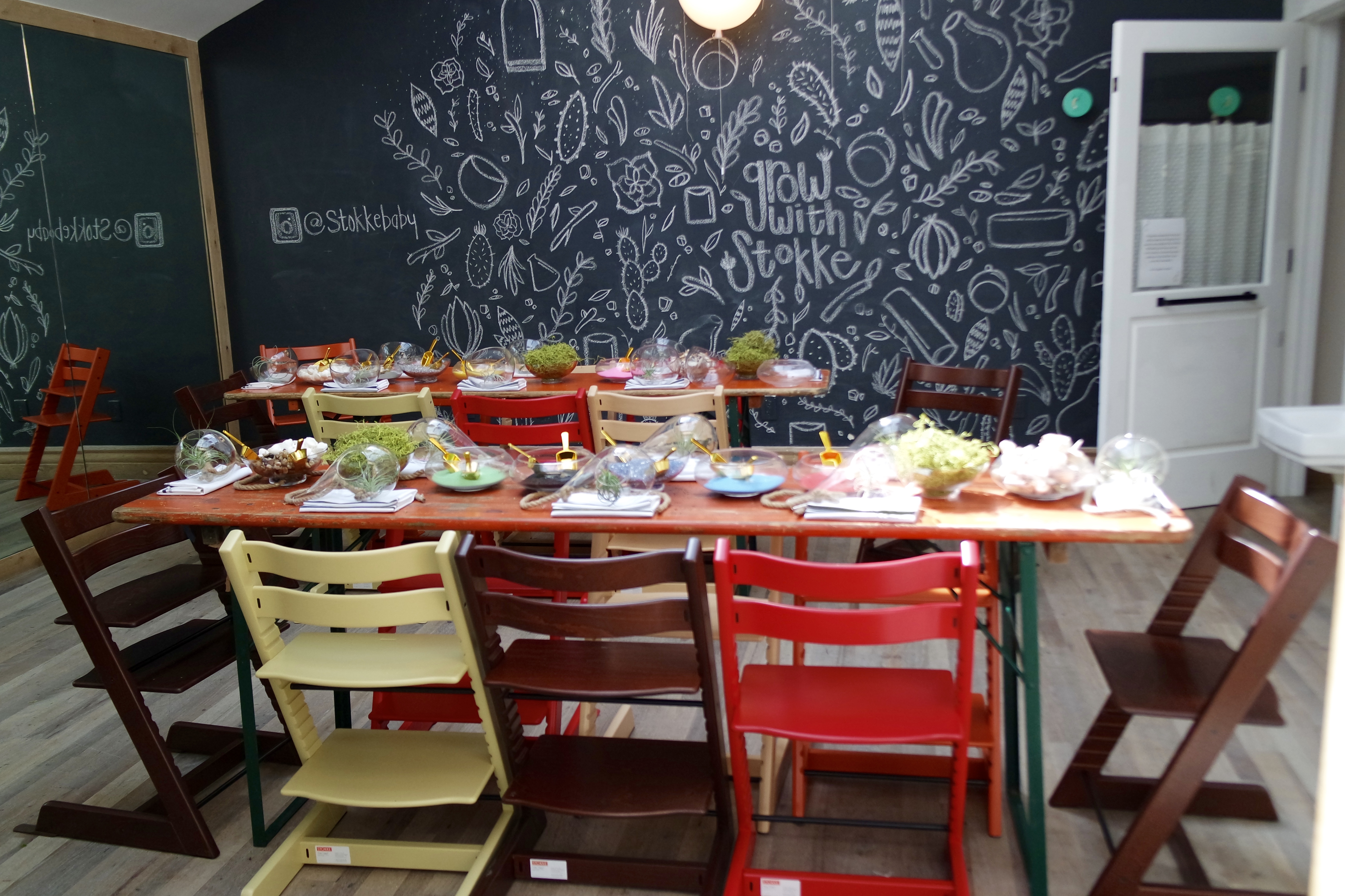 Today one of my favorite brands, Stokke  treated us mommies to a day of FUN. I should tell you that I have been a HUGE fan of Stokke for over 5 years. We bought a Tripp Trapp chair after trying a different highchair and it not working formy little guy. I wanted something that was had a sleeker design, did not look like a conventional high chair, wiped down easily and would easily grow with my son without having to buy an extra booster seat in the future. Not only has this chair grown with my son the last 5 years, I love stealing it as a desk chair. This chair is so durable, every member of our family has used it as some point or another. I know get why they say these chairs are heirlooms. There is always a new use for it. Since this event, I have been coveting the pink chair…