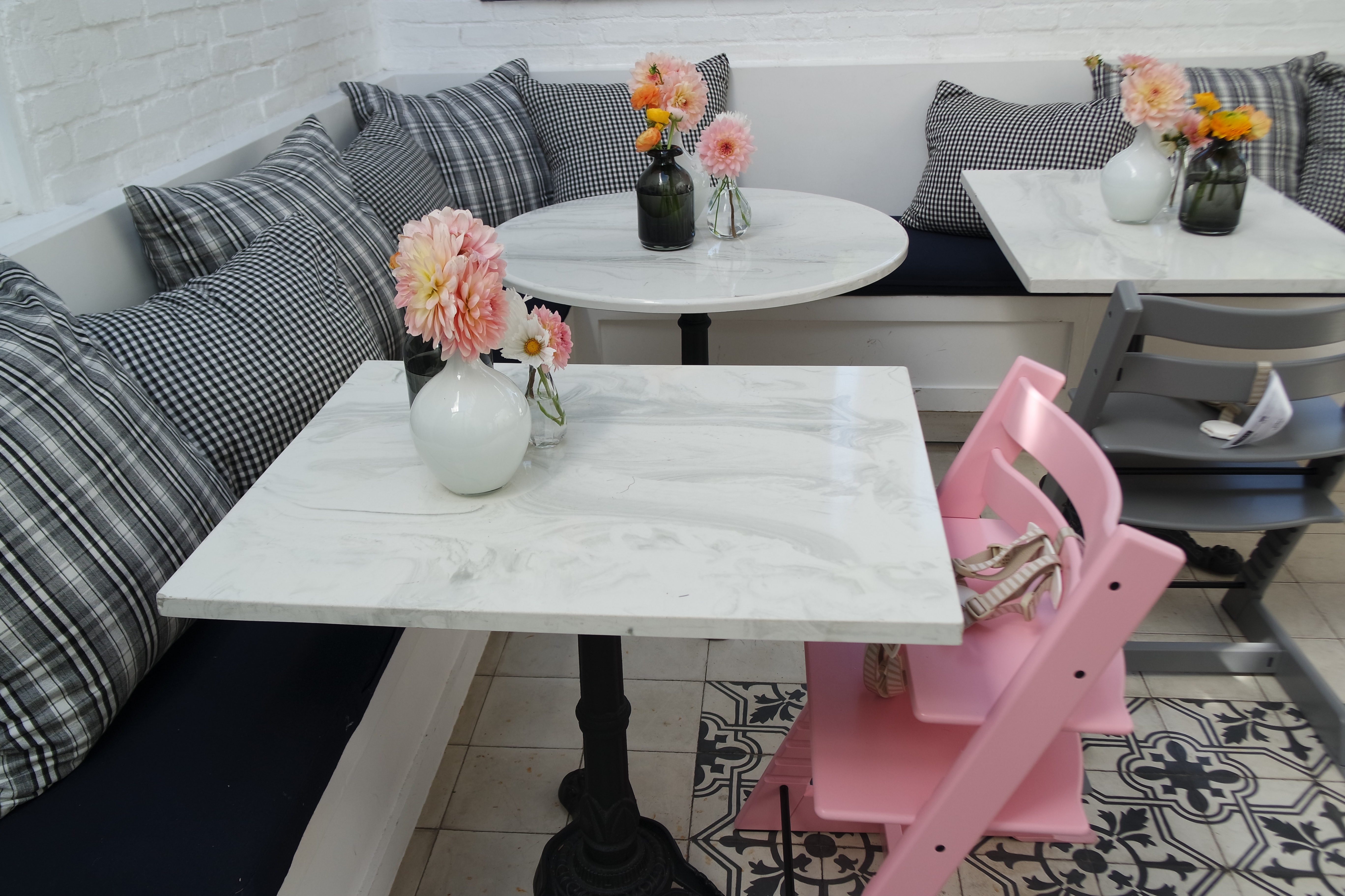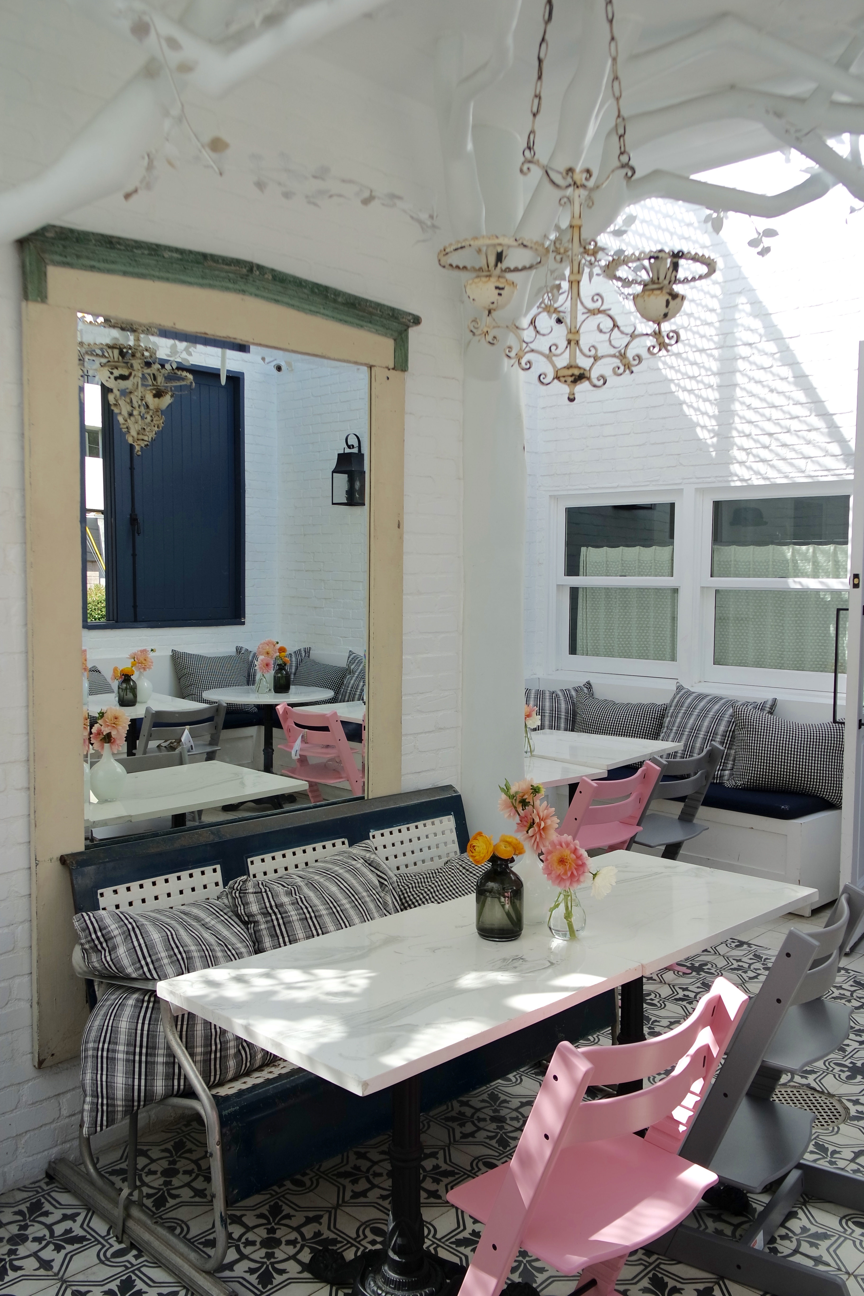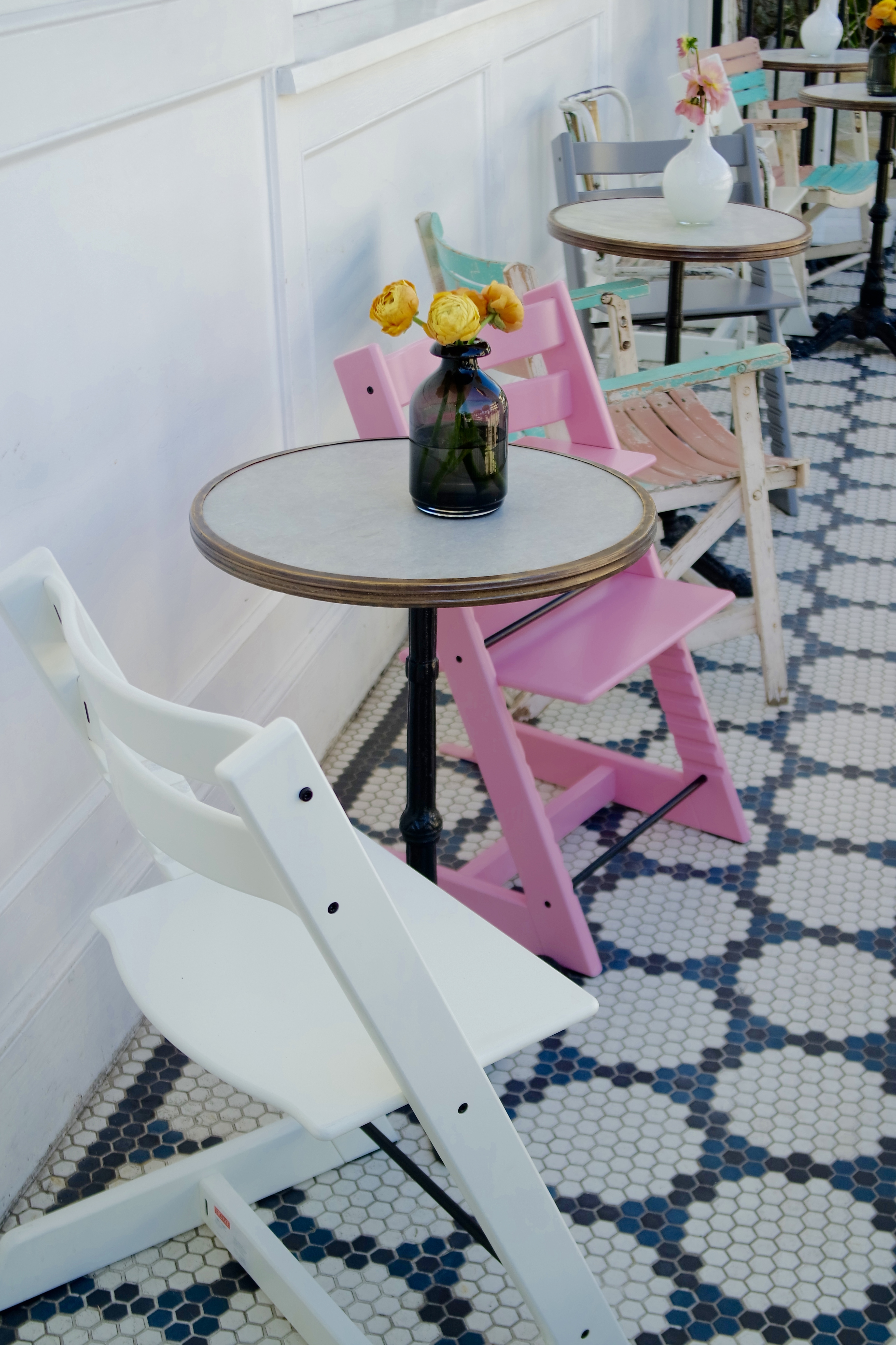 As I walked into Au Fudge, Stokke’s Tripp Trapp Chairs in Baby Pink and Blue were set up cafe style on the front porch area. So cute!