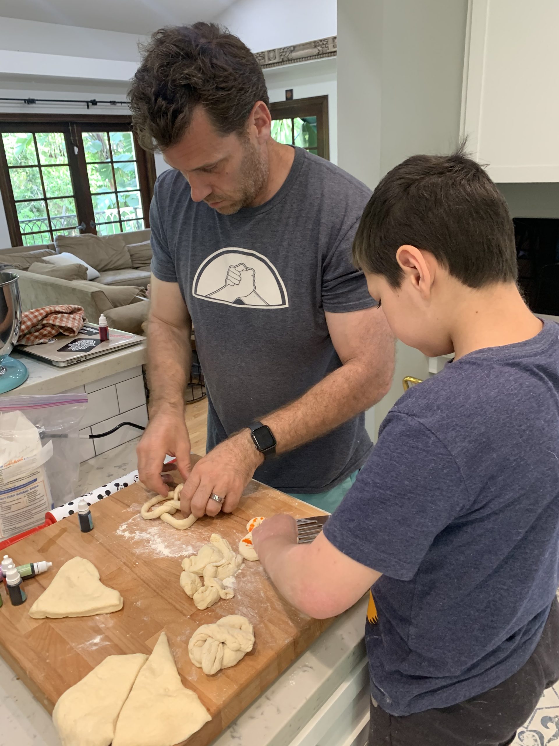 Did someone say vegan homemade soft pretzels…ummmm yes please! I love a good soft pretzel with mustard and I was having a pregnancy craving the other day….so we went on the hunt for a recipe since we are still quarantining at home right now. Our takeaway was making pretzels yesterday was super fun and super messy. I ended up with flour all over my pregnant belly (that was likely inevitable) and kitchen (also inevitable when baking with kids). Something else I learned was apparently I can only make pretzels into the shape of 💩 whereas @ryancrownholm is quite the pretzel chef…pretzel after soft pretzel was perfectly shaped and ready to be baked. My husband clearly has some hidden talents that I am just now learning about 12 years later. While making homemade pretzels takes a little bit of time, I highly recommend it because these pretzels are super tasty and totally worth the time!