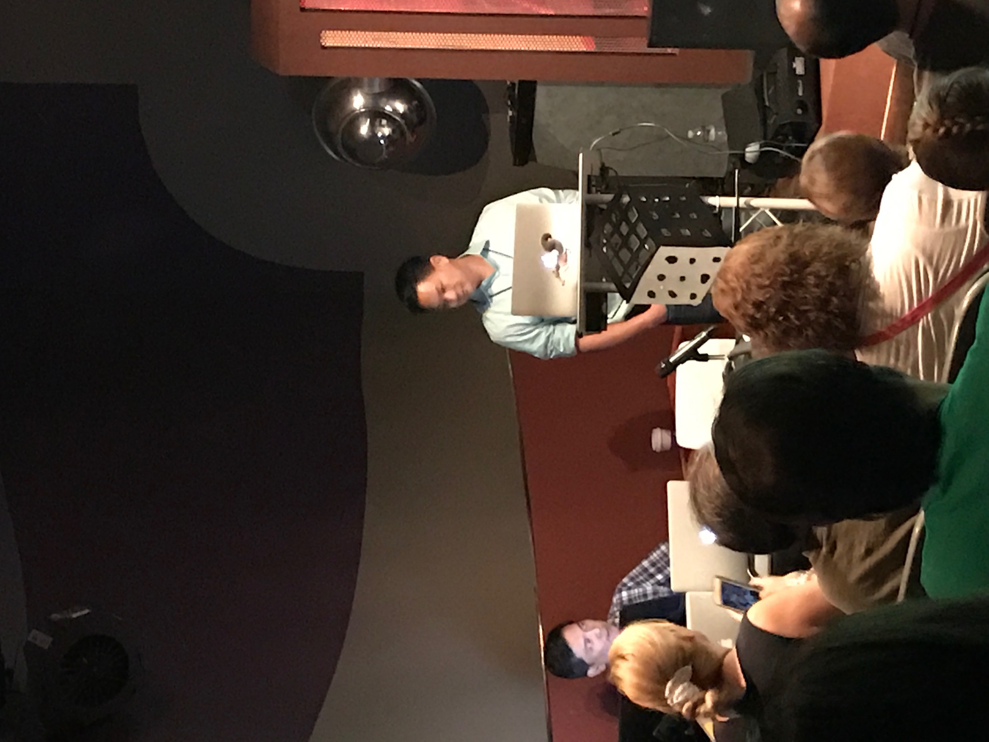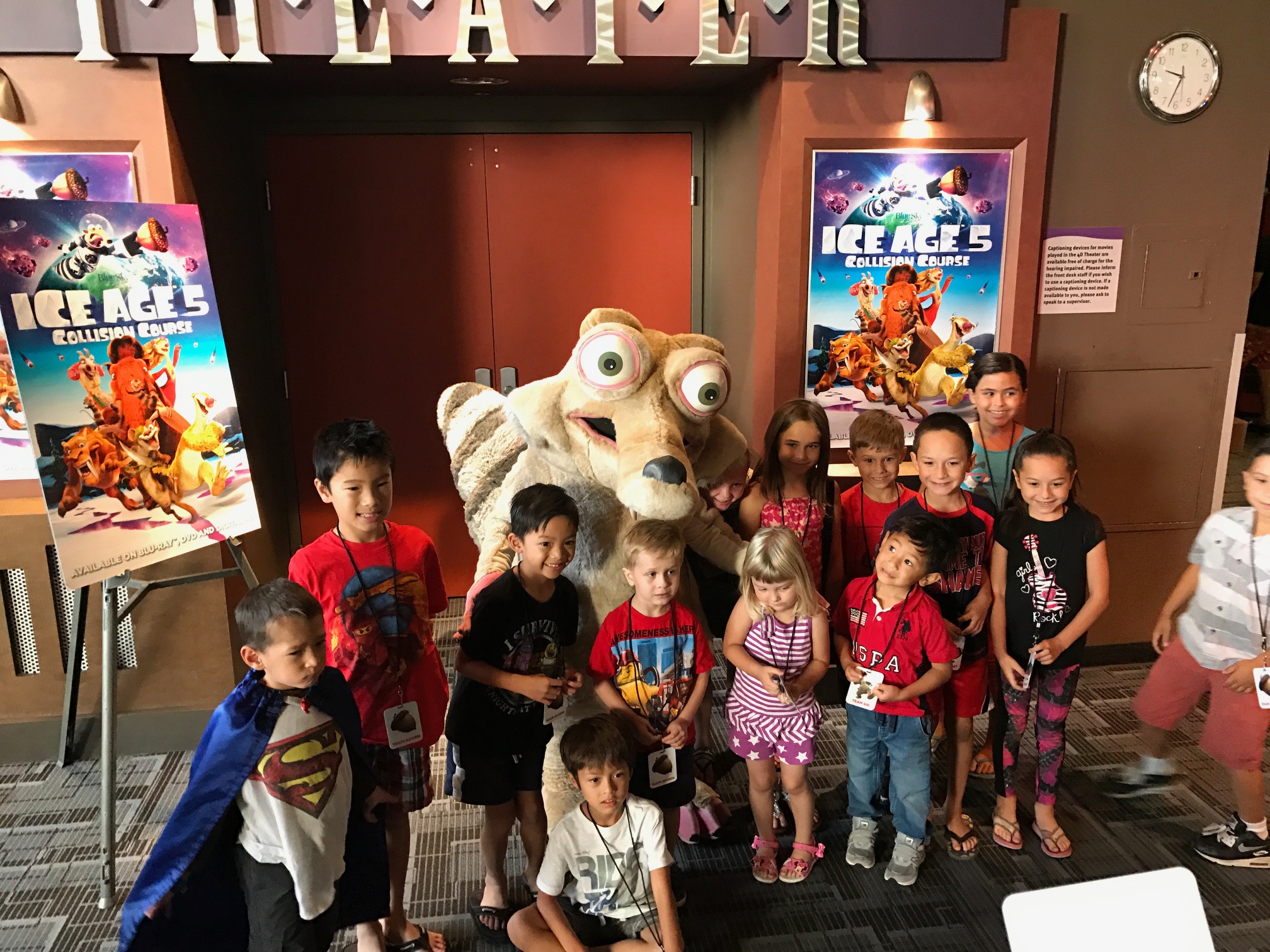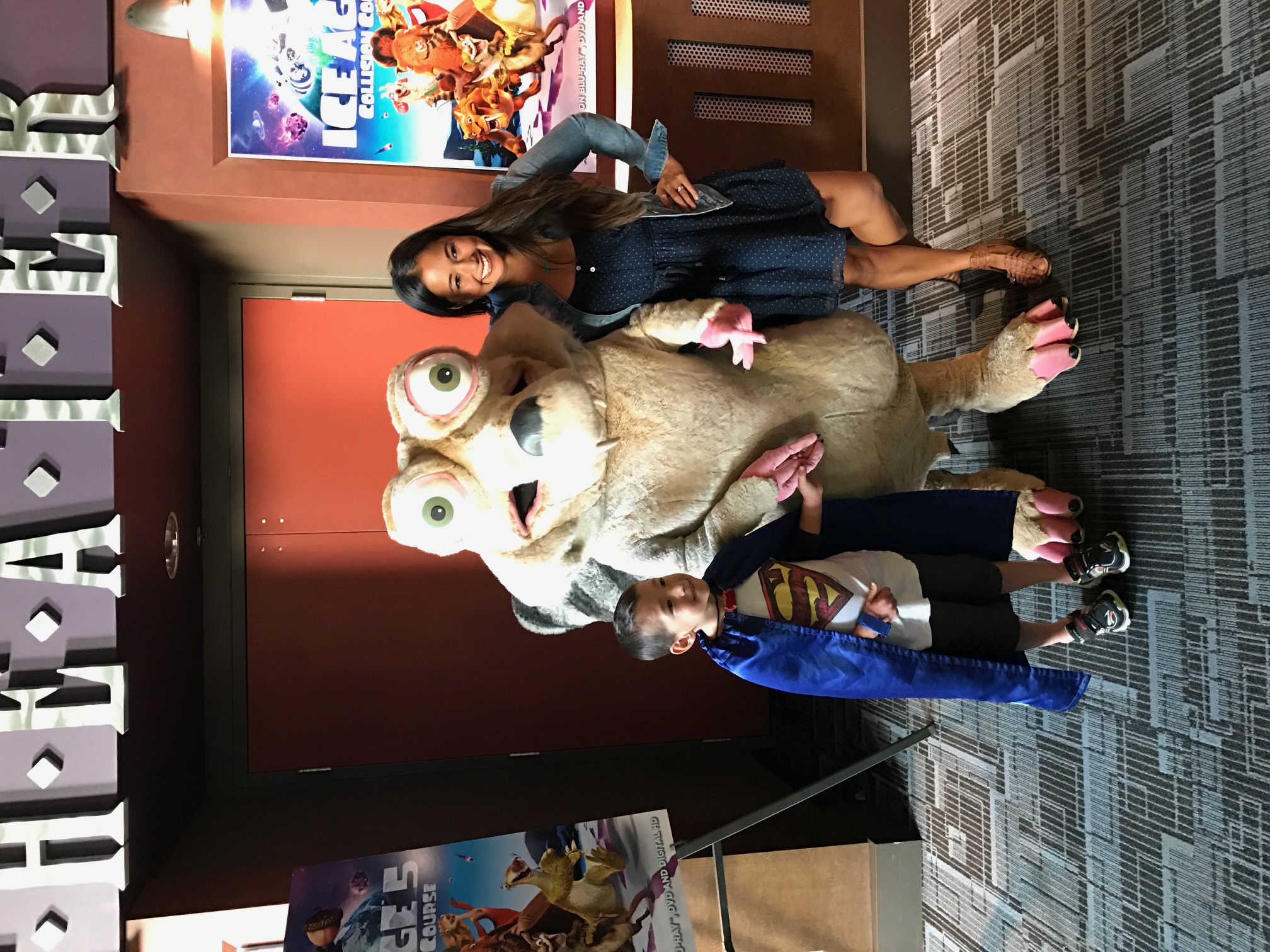 After being treated to a light breakfast and running around the Discovery Cube, we headed into the Theater to learn more about Ice Age. I don’t know who was more excited about this..me or my little one. We have been HUGE FANS  of the Ice Age movies. We have every DVD and even saw Collision Course in theaters. So to get an “inside scoop” was a super cool treat for us. We listened to one of the directors of Collision Course Galen Chu, who has been with the Ice Age family since the original where he started as an animator. He walked us through the storyboards, which was fascinating.