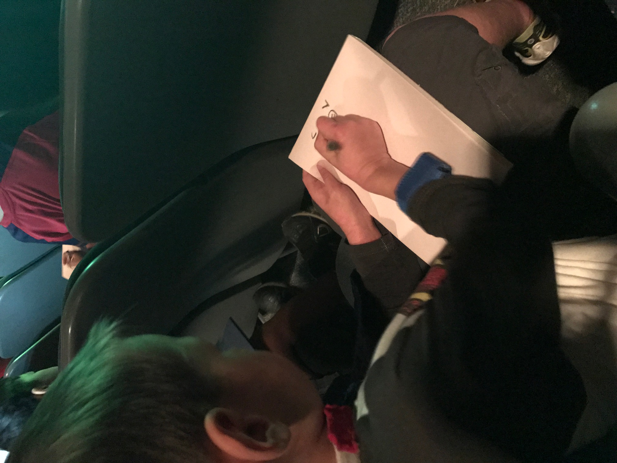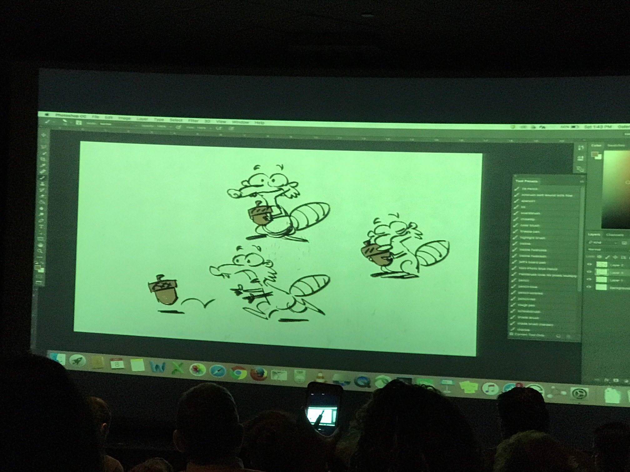 Then the real treat came…one of the animators taught the kiddos how to draw some of the main characters of Collision Course. We started off with Scrat (the squirrel on the quest for his nut), then Buck and ended with Frannie/Francine (Sid the Sloth’s girlfriend). I was amazed at how a little tutorial had my little guy drawing a pretty good rendition of the characters. It was SO COOL!