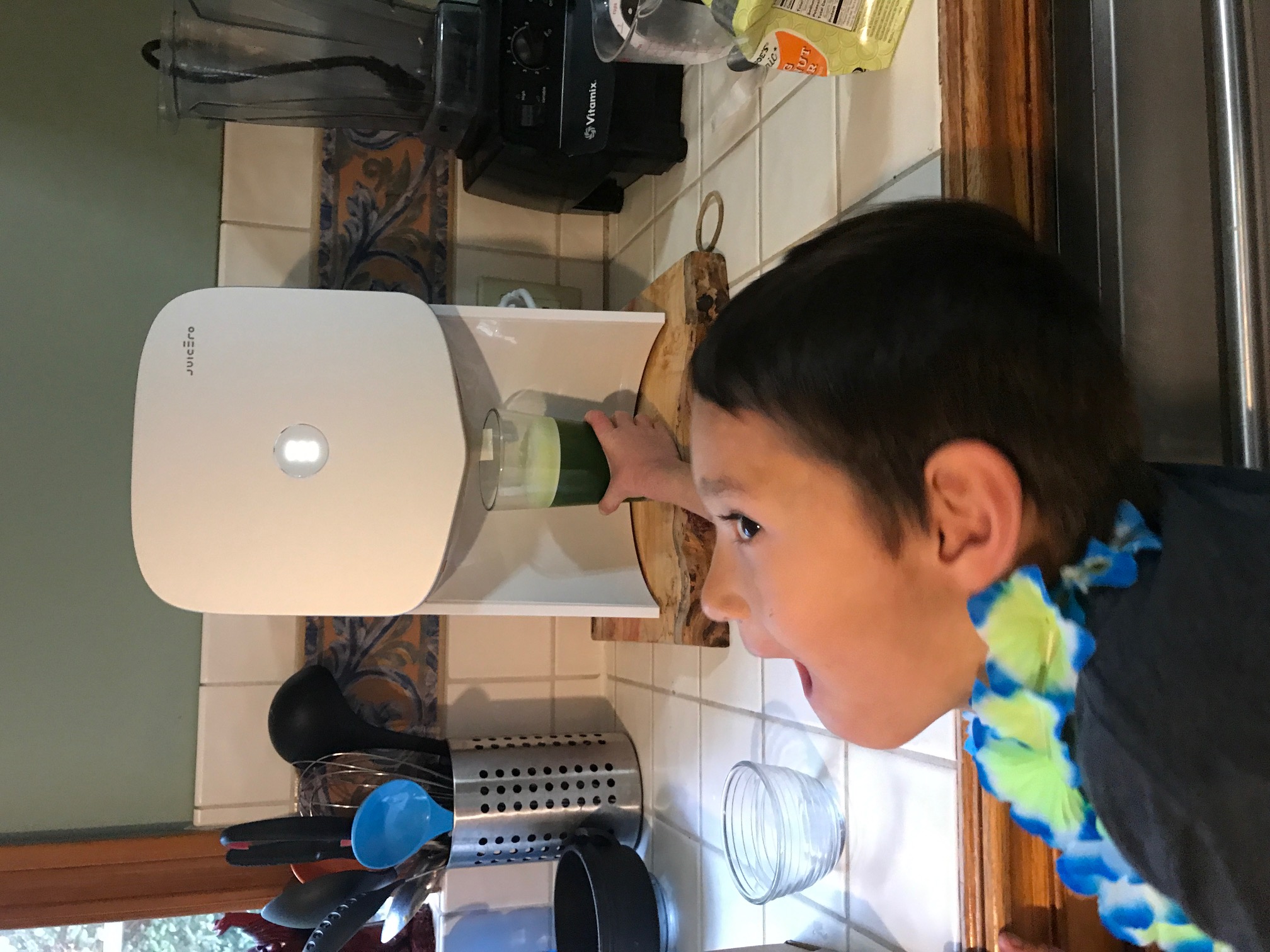 The biggest investment is the machine itself, but if you can commit to using it a year its a little over a dollar a day for the cost. The time you would have spent in line waiting for your juice to be made is eliminated. Having the juice packets in your fridge knowing that you need to use them before the QR code that the Juicero reads won’t let you press the juice (takes away the possibility of rancid juice drinking…yes please) makes you take in more fruits and veggies into your daily diet. One of my favorite parts is that sometimes, I am craving something at night and I pop a Sweet Greens packet into my Juicero and two minutes later my craving for junk food is gone and I go to bed without any guilt. After using this machine for a couple weeks, the hubby is seeing the benefits and loves that our son goes into the fridge to make himself a green juice. As a parent, you will NEVER say no to your kiddo wanting to make and drink his/her veggies. Juicero for the WIN!