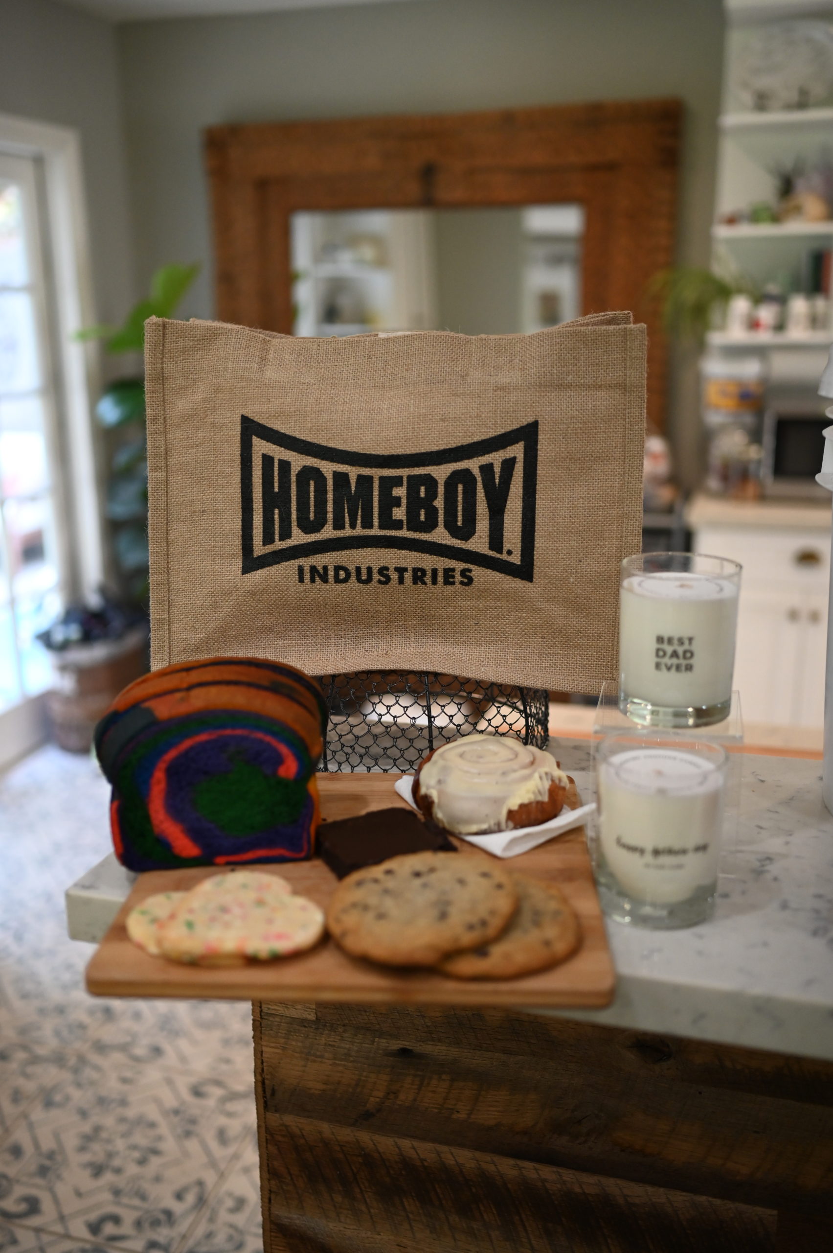 - Homeboy Industries: Love their baked goods for a fun Father’s Day breakfast in bed. Our favorites include the cinnamon bread, cinnamon rolls and chocolate chip cookies. Homeboy Industries helps create jobs for formerly incarcerated men and women and made in DTLA