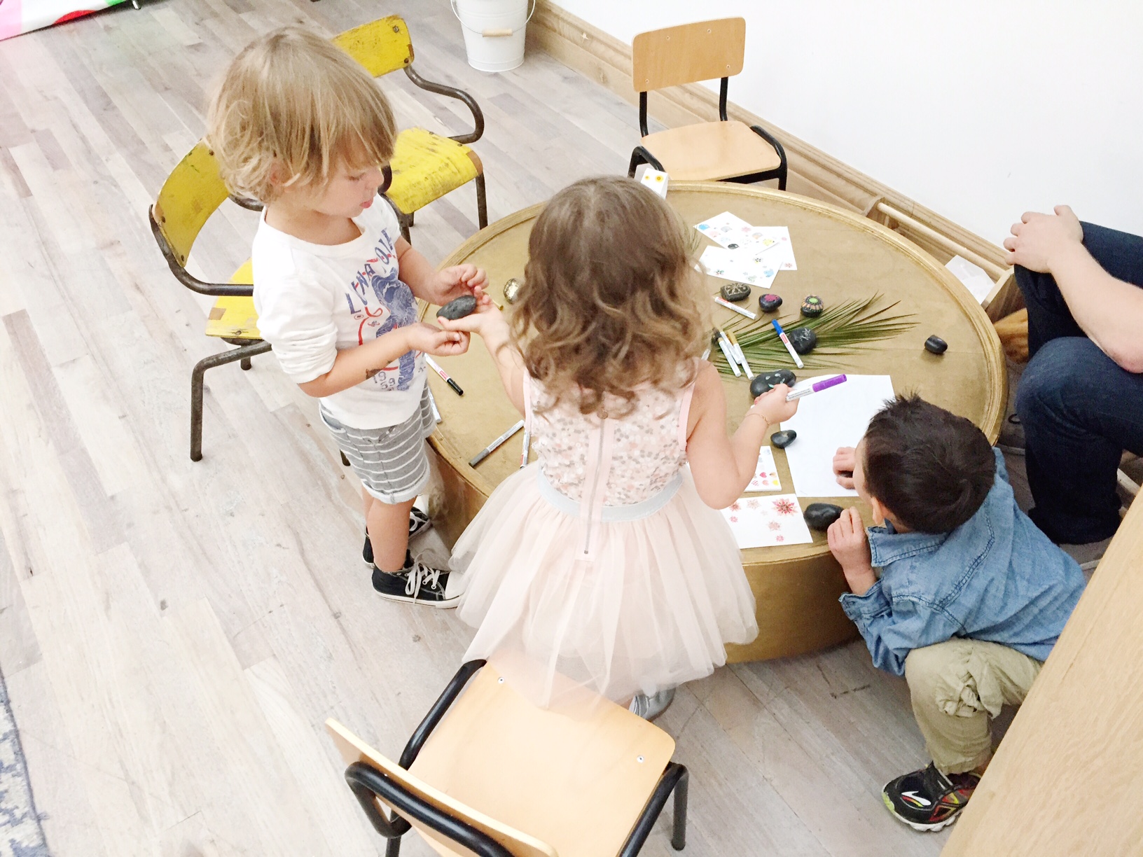 We were treated to delicious comfort food like french fries in ketchup cups, crudite with amazing ranch dressing, chicken fingers, sliders and out of this world brownies from Jessica Biel’s Au Fudge. While the adults were enjoying food and drinks, the kiddos were busy with crafts. There was a nook for coloring, another for painting rocks with stickers, glitter and more. After kids got their fill of arts & crafts, Au Fudge had out fantastic wood legos and other high quality wood toys for them to play. There was definitely no shortage of fun.