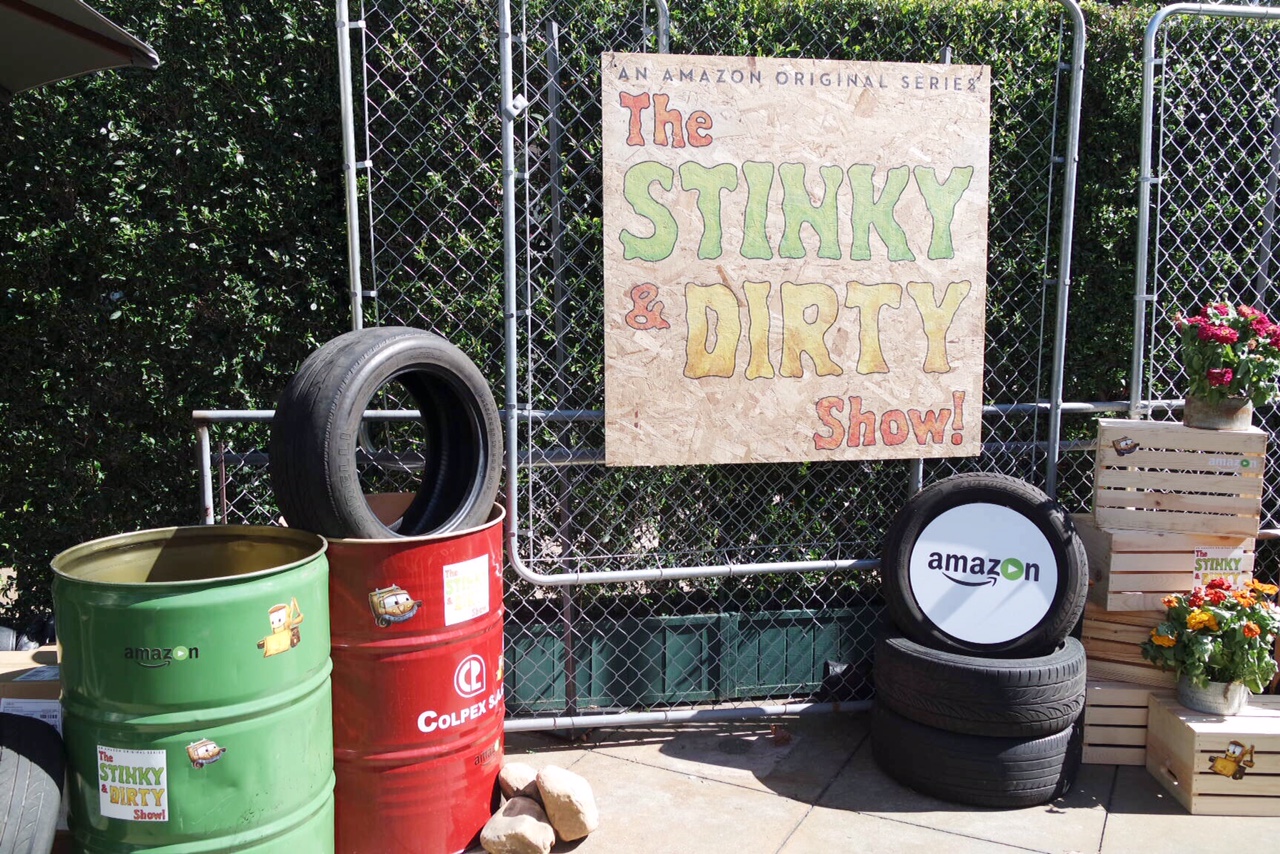 So after munching on popcorn and listening to my little guy giggling throughout the 2 shows we watched, we made our way to the grassy area at The Grove in Santa Monica where Amazon Videos had a pretty AWESOME after party that was decked out in the Stinky & Dirty theme!