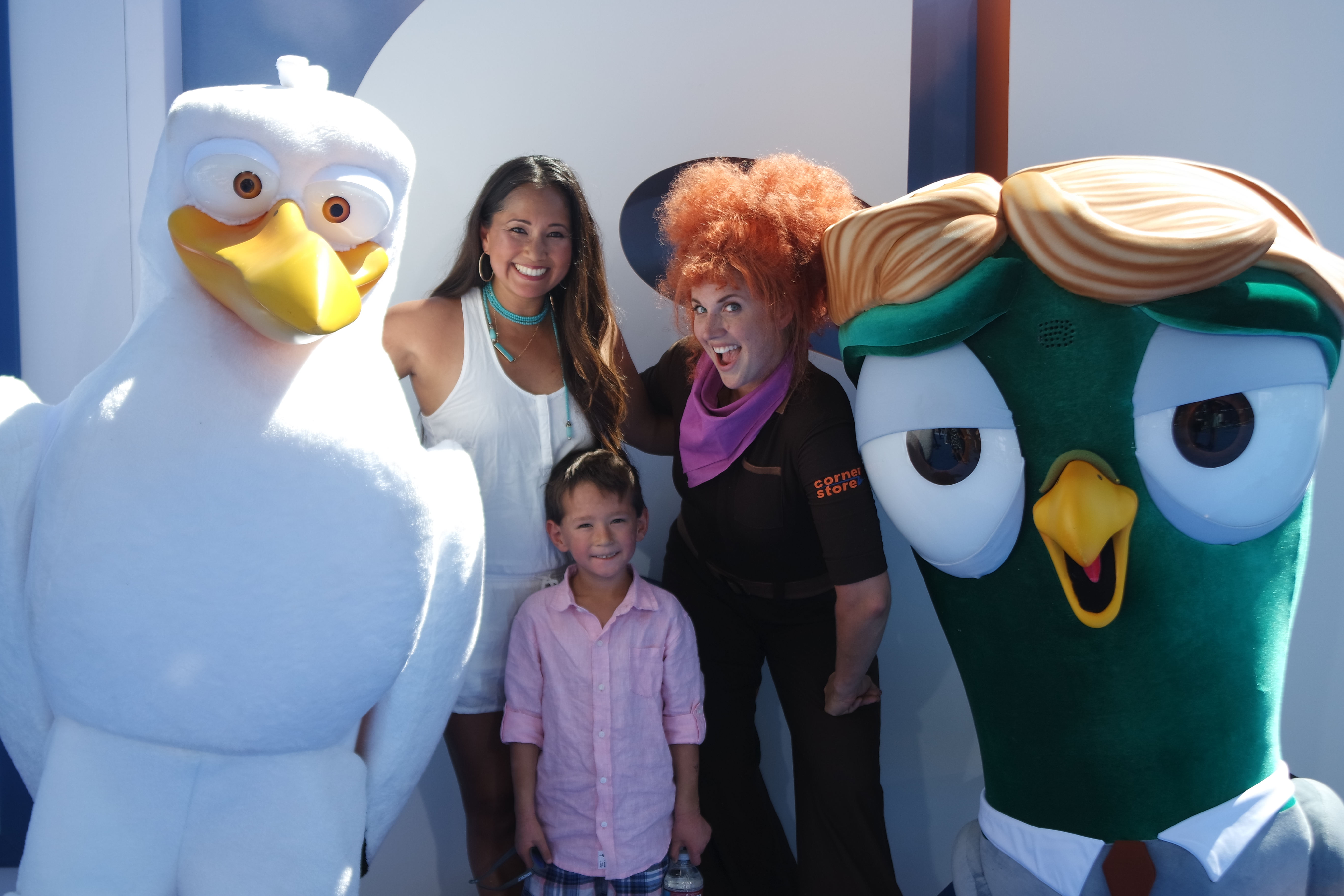 The Blue Carpet was HUGE and totally STAR STUDDED yet completely adorable with the Storks characters everywhere. So much press was there that photographers were on one side of the carpet and media on the other. Prior to the celebrities making their way down the carpet, Cinnabon brought everyone mini cinnamon rolls. Excitement was buzzing and then the excitement started with the entrance of Storks characters Tulip (Katie Crown), Pigeon Toady (comedian Stephen Kramer Glickman) and Junior (Adam Samburg), the press went crazy!