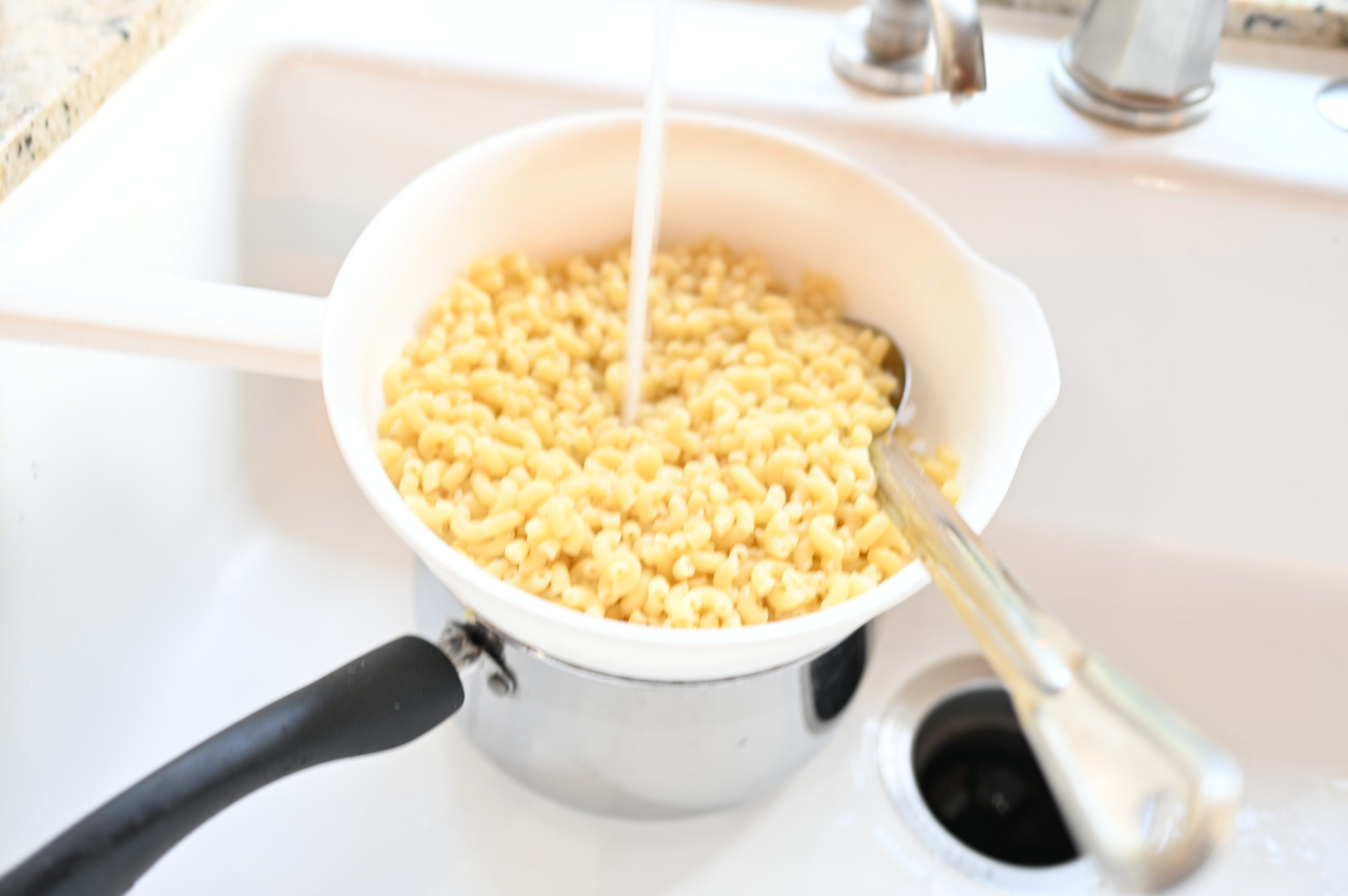 - Drain the pasta and then place back into your pot
