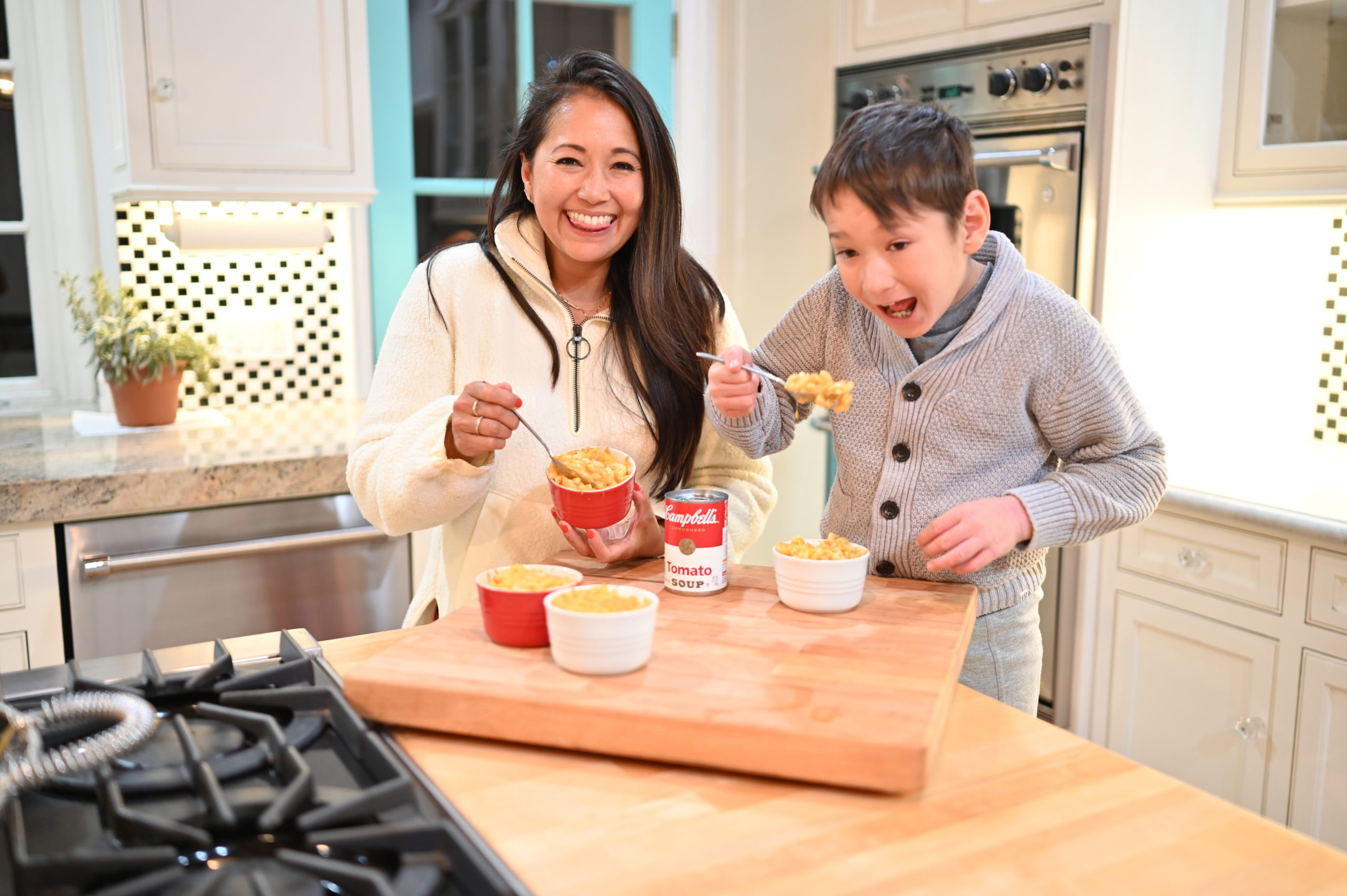 Nothing cozier on a cold winter night than a warm cup of something yummy! Loving this Baked Mac and Cheese with Campbell’s® Condensed Tomato Soup (10.75 oz.). Super easy and sup